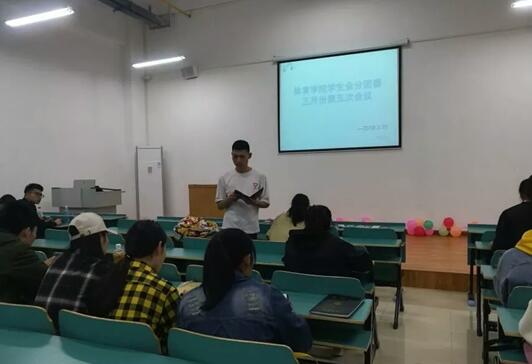 分团委书记助理谭佑龙首先对本周各部门工作做了简单的汇报和总结,包括心理部的“定向越野”活动、体育部的“黄师杯”排球赛、宣传部的“解忧杂货铺”活动等。