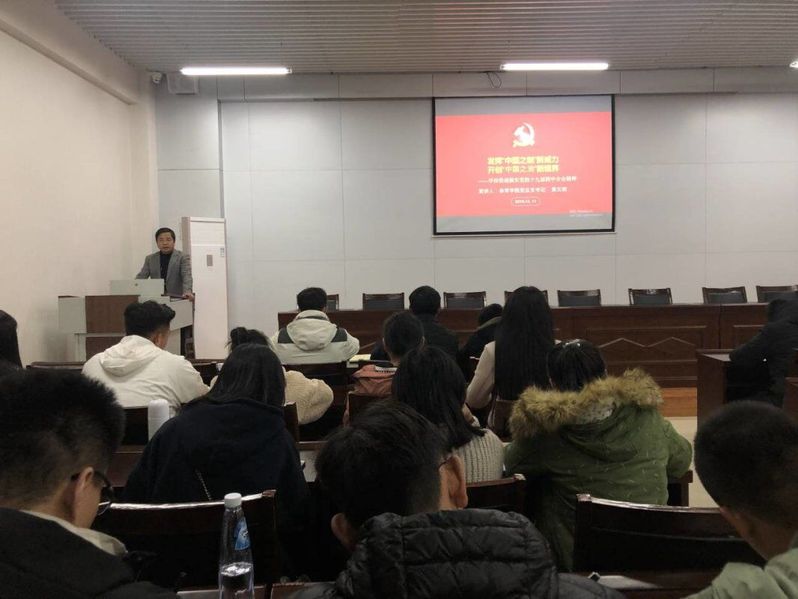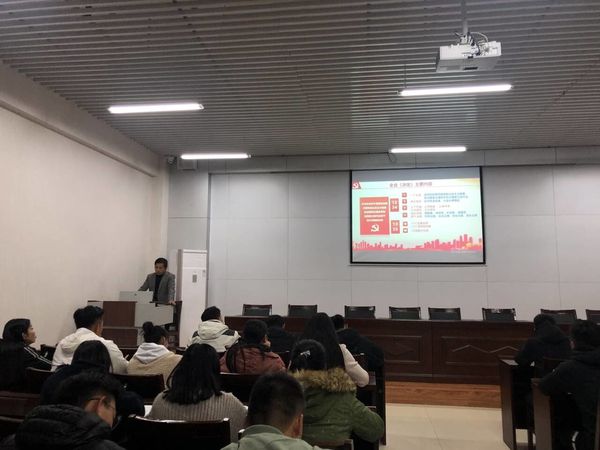 2019年12月11日晚七点,公司党总支书记黄文利在体育馆205会议室给全体员工党员及入党积极分子进行宣讲“十九届四中全会精神”。