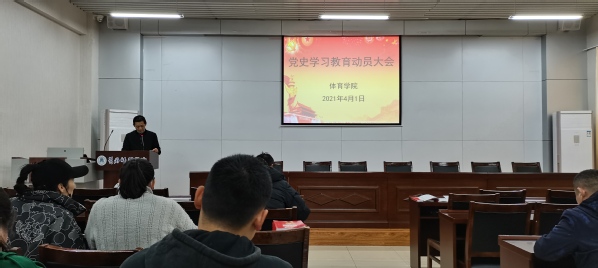 41日下午2点半,公司党总支在体育馆205会议室召开党史学习教育动员大会,公司党总支书记黄文利主持会议并作动员讲话。