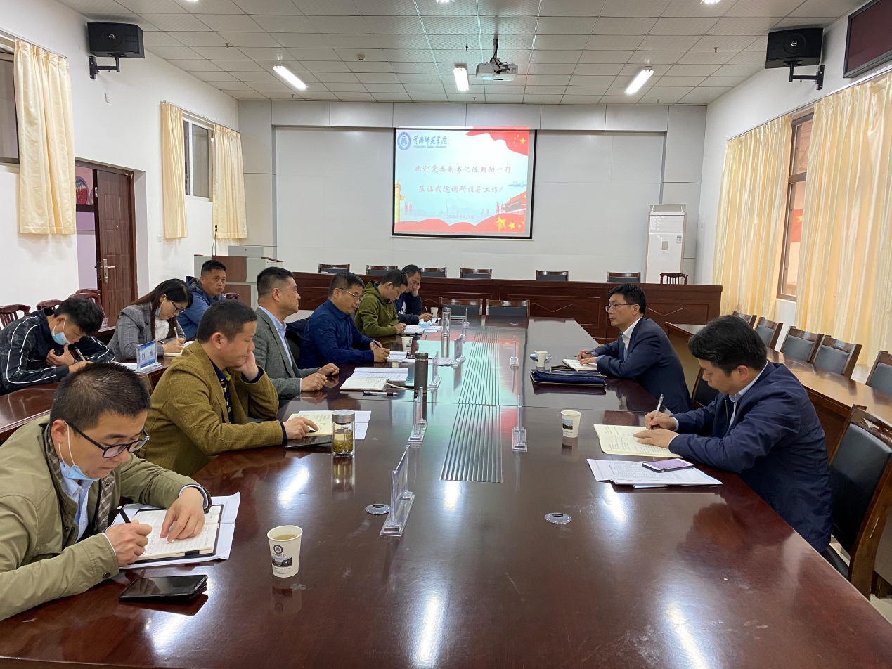4月21日下午,公司党委副书记陈朝阳来公司开展调研指导工作,招就处处长郝进仕陪同调研。公司领导班子成员、系部主任、员工党支部书记和辅导员参加了本次调研。