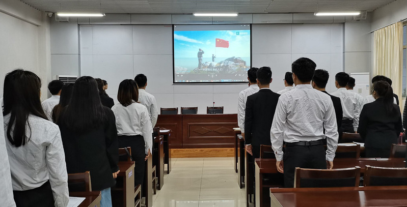 1、全体起立,奏唱国歌。