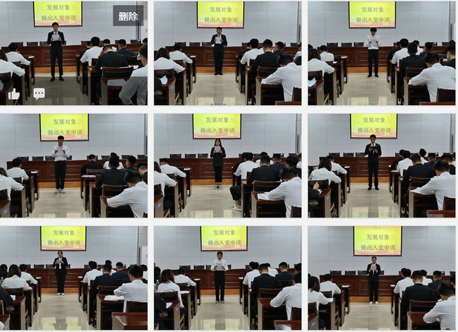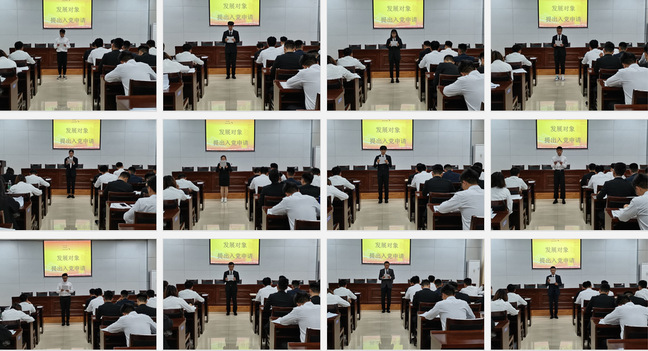 322名重点发展对象依次提出入党申请,并汇报培养考察期内的学习、工作、生活动态,及向党组织说明的相关问题。