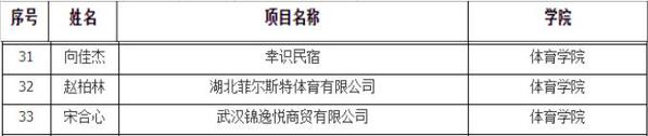 近日,从威廉官方网站招生与就业处传来好消息,公司3个员工的创业项目在全校57个初赛项目中脱颖而出,通过初审,并予以了立项。这三个项目分别是体教1804班向佳杰的《幸识民宿》、体教1904班赵柏林的《湖北菲尔斯特体育有限公司》、体教1703班宋合心的《武汉锦逸悦有限公司》。