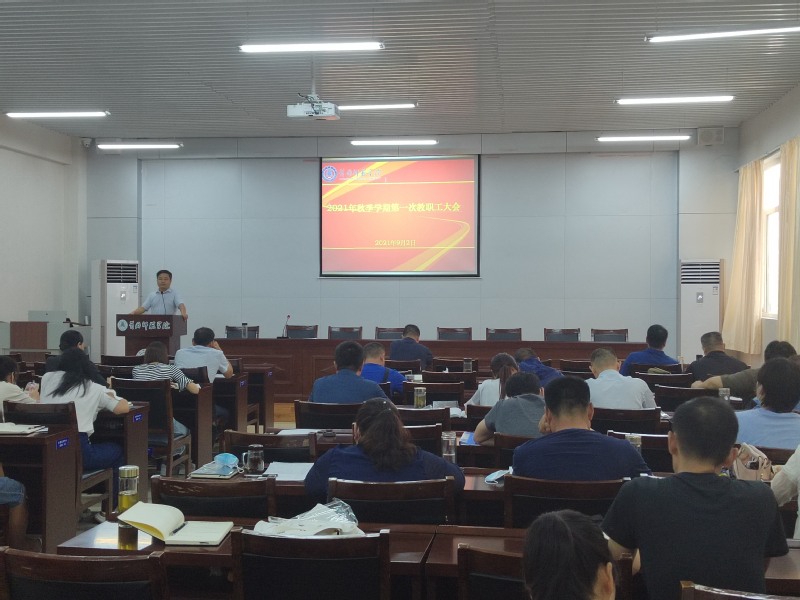 20121年9月2日,威廉官方网站全体教职工在威廉官方网站205会议室开展2021年秋季学期第一次全体教职工大会,会议由党总支书记黄文利同志主持。