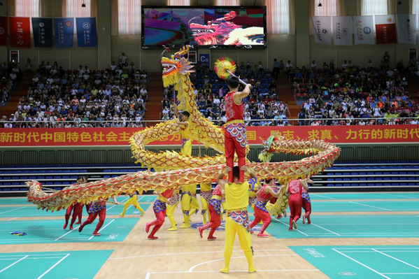 公司舞龙舞狮队参加开幕式表演