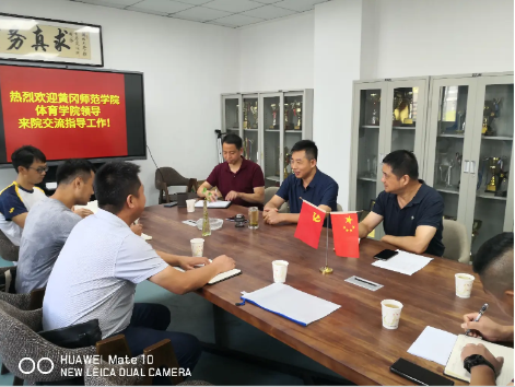 经理助理汪子文与湖大威廉官方网站副经理张强弓就校园体育文化建设展开深入的交流。张经理还详细介绍了湖北大学正在筹备中的体育文化节,半程马拉松,健康跑等活动的筹办情况。
