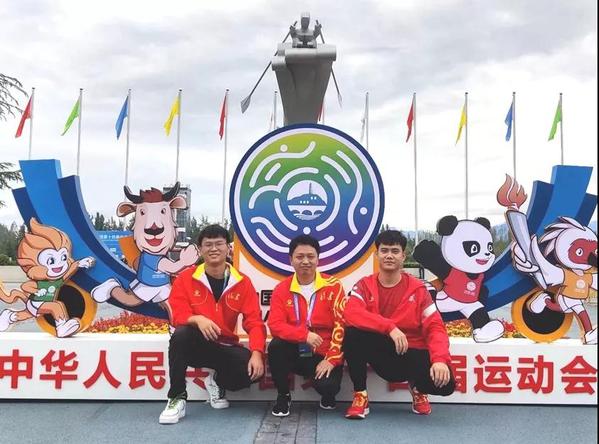 威廉官方网站毕业生汪天棋(右)和蔡圃良(左)参加第十四届全运会