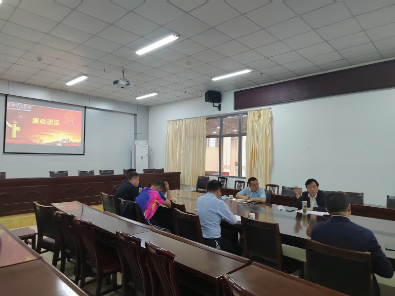 5月18日下午,公司党委副书记王基家,在体育运动中心201会议室与公司领导班子成员进行集体廉政谈话,党委组织部常务副部长周俊飞参加了谈话。