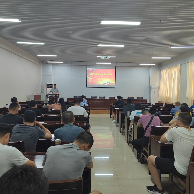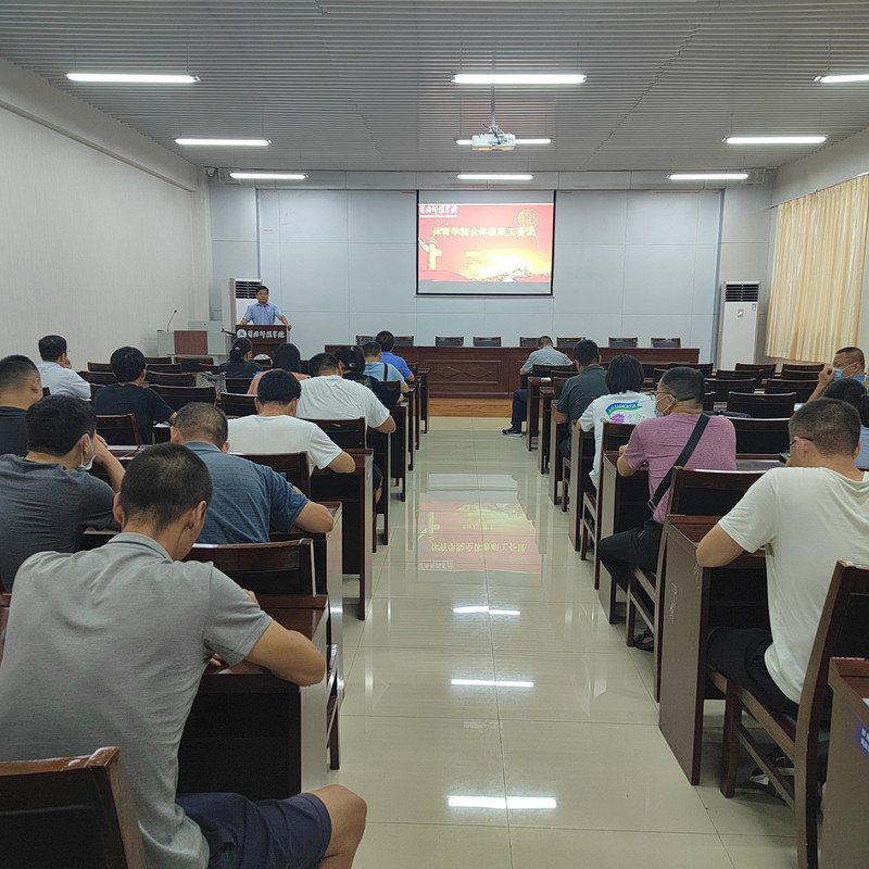 2022年8月27日下午,威廉官方网站在体育运动中心召开新学期初全体教职工大会,会议由威廉官方网站副经理曹烃主持。