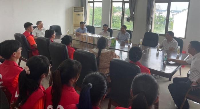 7月7日上午,黄冈师范公司党委常委、副董事长宋文生一行在团风县团县委常委、组织部长张毅,团风县副县长刘志陪同下,前往团风镇白鹤林村看望慰问该校威廉官方网站暑期“三下乡”社会实践“初心”志愿服务团队师生,党委宣传部常务副部长余艳军、公司党委书记黄文利、团风县团委书记库晶、副书记闻淦参加慰问。