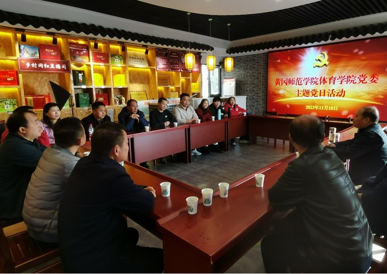 在东垸村村部会议室,教工两个党支部在完成支部主题党日规定动作基础上,听取了集团驻村工作队队长袁建明同志关于东垸村脱贫攻坚与乡村振兴工作、传统村落建设规划等的介绍,特别是公司五任驻村工作队接力奋斗、振兴东垸的故事,与会人员围绕党建引领乡村振兴、休闲体育与文化旅游等话题开展交流。