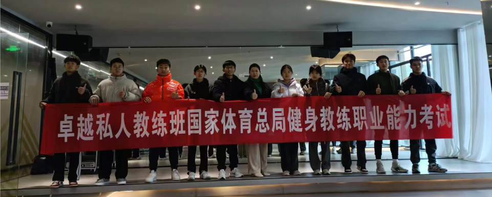 2023年12月9日上午,公司“卓越私人健身教练”实验班选拔10名同学参加在黄冈举办的2023年国家体育总局健身教练职业能力测评考试,本次考试主要包括理论测试、体能考核和实操评定三大部分,测评员工均以优异成绩通过并获取健身教练职业能力证书。