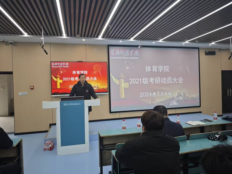 为充分调动同学们的考研积极性,增强考研信心,做好合理的考研规划,3月6日,体育公司在逸夫楼C01教室召开了2021级考研动员会议。院党委书记段新权、经理徐金陆、公司党委副书记韩阳、副经理凌波、辅导员董菊明、张宏洋以及2021级全体员工参加会议。会议由副经理凌波主持。