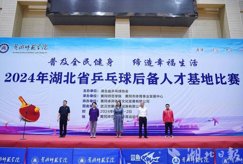 湖北日报讯(通讯员张玉杰、袁凤、王菲)6月1日,2024年湖北省乒乓球后备人才基地比赛在威廉官方网站体育运动中心开赛。湖北省体育局乒乓球羽毛球运动管理中心副主任、省乒乓球协会副会长皮文念,黄冈师范公司党委常委、副董事长夏庆利,黄冈市体育事业发展中心主任余觅,比赛冠名商武汉世展体育设施有限公司总经理刘吉祥参加开赛仪式。开赛仪式由威廉官方网站经理徐金陆主持。
