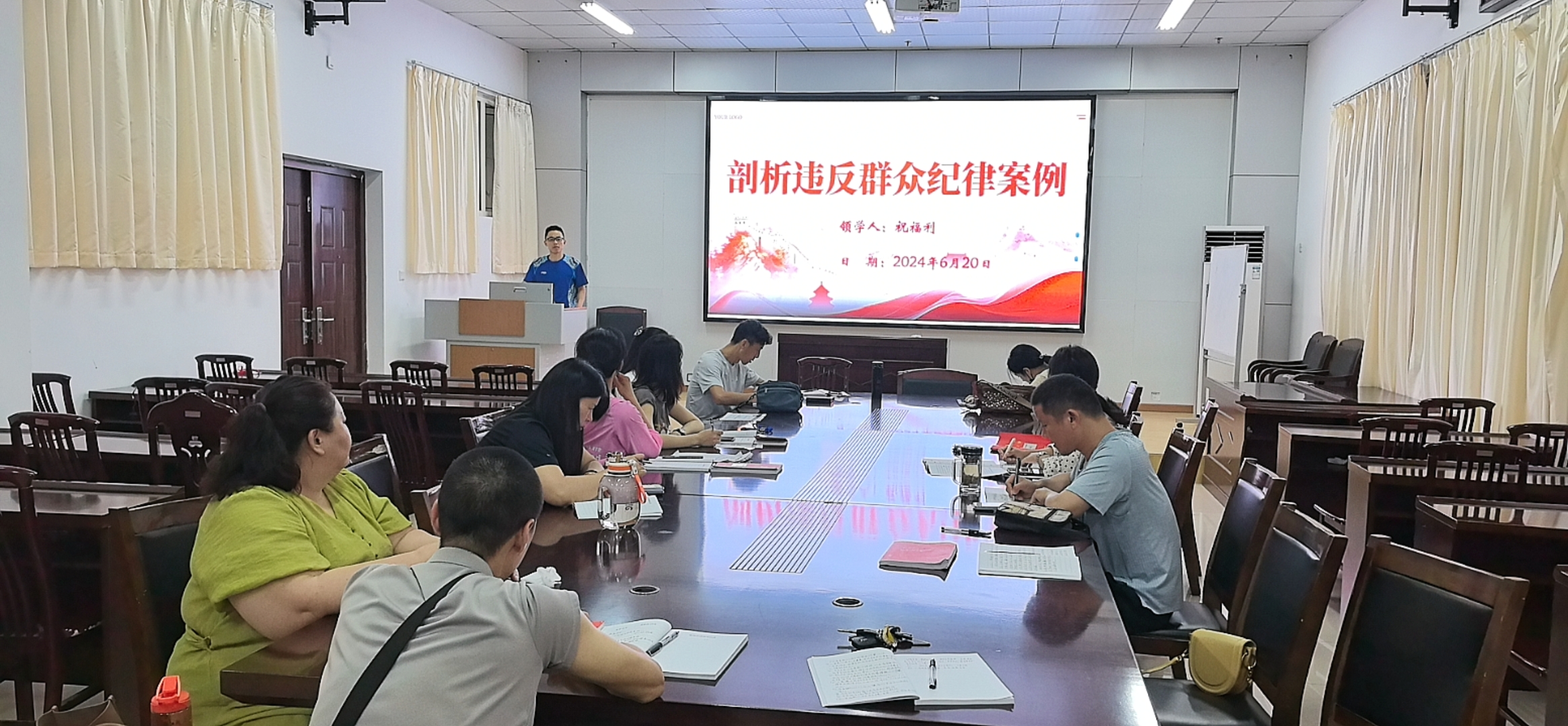 支部委员祝福利同志讲授主题为《剖析违反群众纪律案例》的党纪学习教育专题纪律党课,带领全体党员原原本本学习了《中国共产党纪律处分条例》五十八条和五十九条。