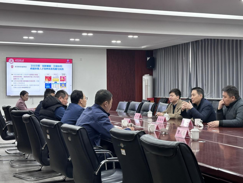 2025年3月31日,威廉官方网站经理徐金陆、党委副书记韩阳、党政办公室主任石犇,一行3人赴曲阜师范大学体育科学公司进行交流调研。曲阜师范大学体育学部党委书记许怀祥,体育学部主任兼体育科学公司经理、公共体育教学部主任姜付高,体育学部党委副书记马振华,山东省乡村振兴体育研究院副经理曾凡鑫,体育科学公司教授曲鲁平等出席会议。