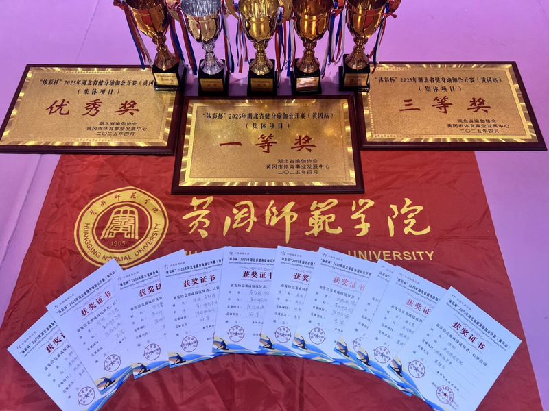 419日至420日,公司健身瑜伽代表队荣获“体彩杯”2025年湖北省健身瑜伽公开赛(黄冈站)院校组集体项目冠军,并包揽院校组男女混双冠、亚、季军男单第三名、第和第七名,女双第六名和第八名;荣获院校组集体“一等奖”和“三等奖”以及“优秀组织奖”。