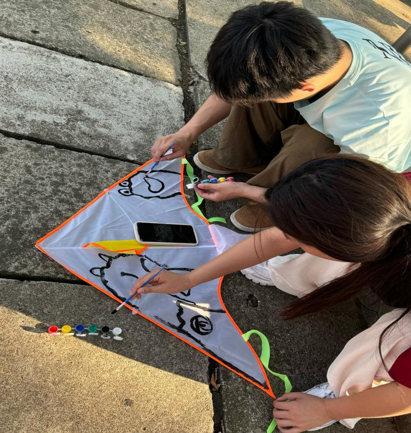 “老师快来看,我画的风筝怎么样?”随着邓莉的一声叫唤,同学和老师立马到随性涂鸦区,欣赏她和朋友涂鸦的画面,大胆的构思,鲜艳的色彩,好一幅动物世界,栩栩如生。同学们都交口称赞,竖起了大拇指。邓莉还调皮地摆个poss,留下难忘的一幕。涂鸦区引得不少同学。有的驻足学习,有的跃跃欲试,有的认真涂鸦,现场十分温馨。