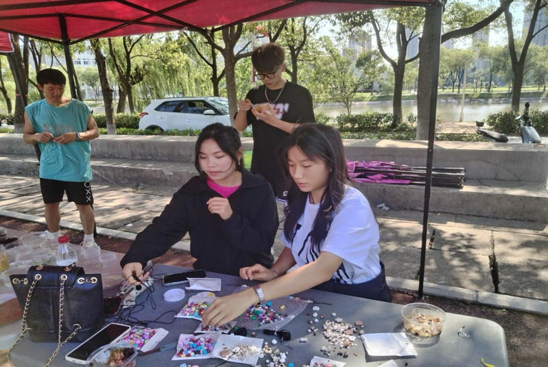 “你看看我穿的这串,好看不?”“嗯,好看好看,我也来做一个!”精致的珠子、可爱的小配件,在大家的巧手下串联成独一无二的饰品,串起满心欢喜。