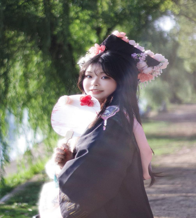“真没想到临近毕业了,还能参加这样有意义的活动。”外院毕业生穿着学士服,拿着亲手制作的团扇,站在红烛湖边,随着“咔擦”一声,留下在校园的美丽倩影。