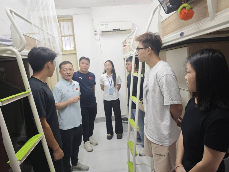 走访过程中,公司领导一行逐一走进每间新生宿舍,仔细查看宿舍卫生环境、设施安全及生活用品配备情况,对新生快速整理内务、主动适应集体生活的表现给予肯定。在与新生交流时,领导们围绕“快速融入集体、规划老员工活、强化安全意识”三个重点,结合体育学科特色,鼓励新生既要扎实学好专业技能,也要注重团队协作能力培养,合理安排训练与学习时间,尽快完成从高中生到老员工的角色转变。